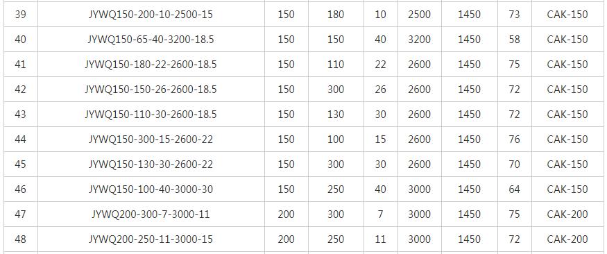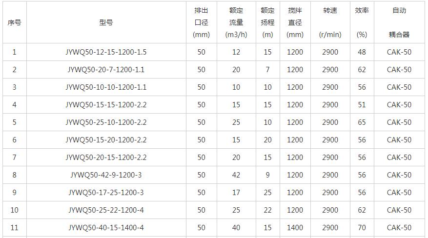 JYWQ自動攪勻排污泵選型性能參數(shù)