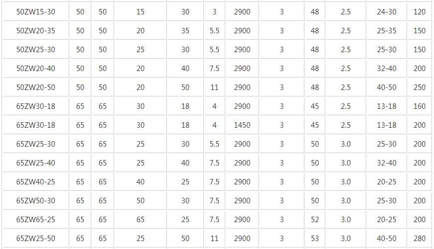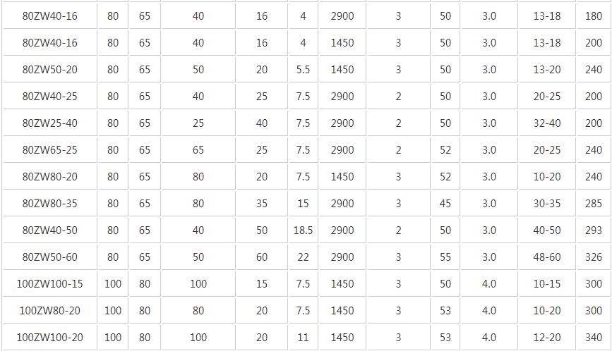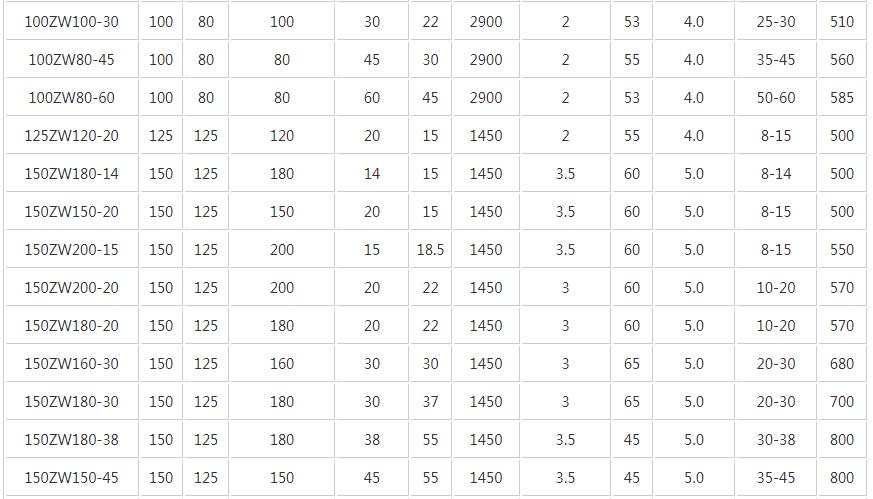 5、ZW型自吸排污泵通過能力懸浮顆粒直徑為泵口徑的60%,纖維長度為泵口徑的5倍。